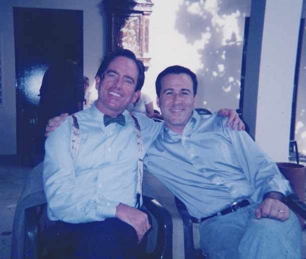 My relationship to the show goes deeper. When I saw it a month after it opened to its rave reviews, it was on a quick trip to New York from my then-home in Los Angeles. I flew in a day early and got up at 5am to get on the cancellation line (it was raining, naturally) in the hopes of getting a single ticket. I was something like twelfth in the queue, no guarantee of getting in at all, but I did . . . and not till nearly curtain time at 2pm. But I was on a mission because my sole reason for coming to town was the funeral for my best friend, Christopher Gorman, who had died a few days prior in Los Angeles of complications from AIDS. It was on his deathbed at the hospital when, in a memorable moment, I asked him if there was anything I could get him. In a weak voice, but with his unmistakable flair, he said, “Yes. A seat in the orchestra for The Producers, preferably on the aisle.” Before leaving for the funeral, his friend the actress Joanna Gleason, had designed and distributed these beautiful business-sized cards that featured his signature, “Love, Christopher,” from one of many letters he’d written her. She had it set on a card against a blue sky and clouds. I was carrying one in my wallet and before I took my seat, I found a spot downstairs in the lounge of the St. James Theatre and tucked it behind a vintage wooden sign, framed behind glass. I wanted his presence known (the sign’s still there but I checked years later, and the card must have dislodged because it’s disappeared). Before the lights went down, I looked up to the heavens in the cathedral that is a Broadway theater, and said, “This one’s for you, Christopher.”