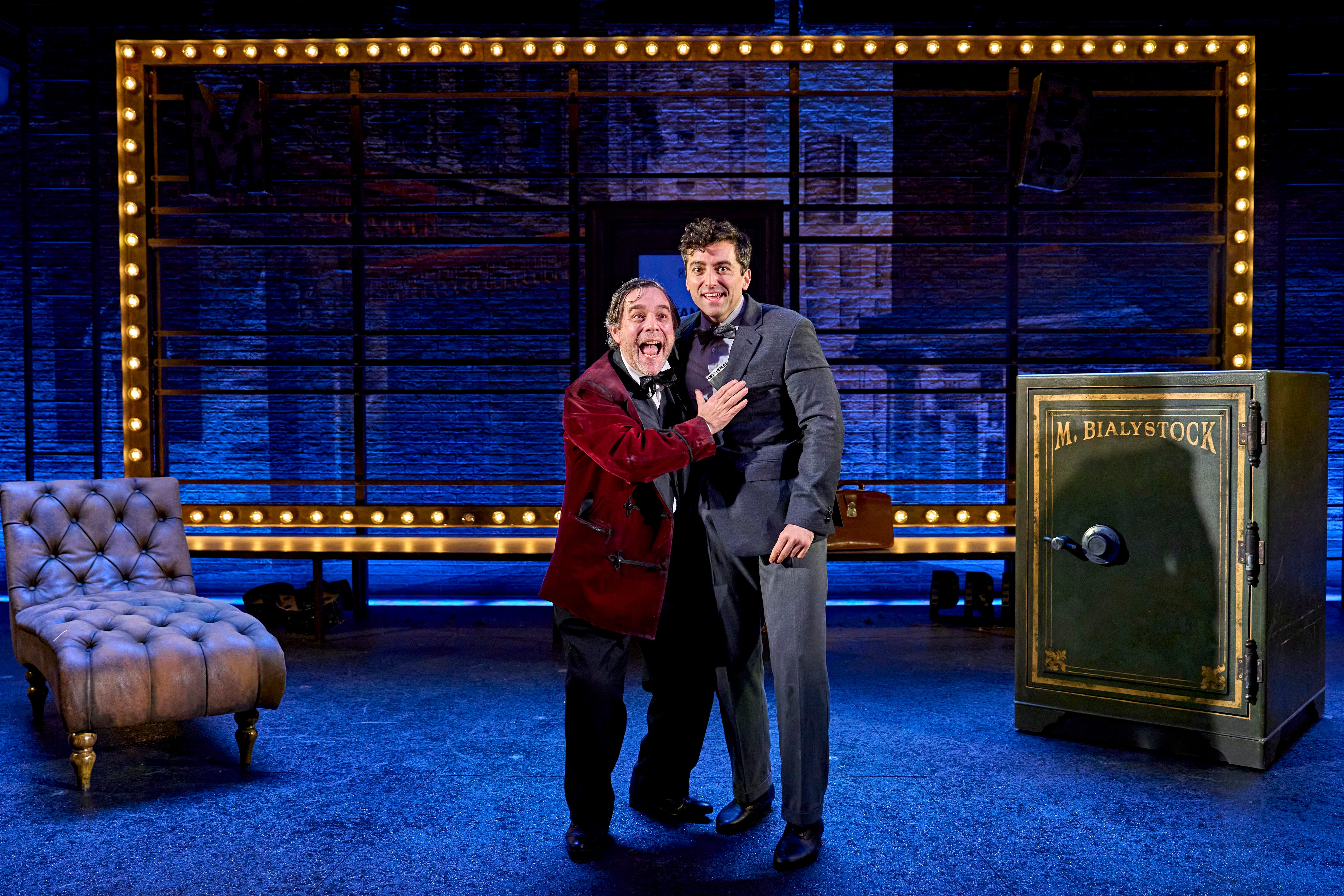 Broadway’s four-time Tony-winning designer Scott Pask has done a marvelous job reconfiguring the scenery and using props to maximum effect. Multi-purposed in some cases, one transition between scenes had the safe in Max’s office (and where Leo has just stolen the money to take off for Rio) cleverly and effectively transformed into the claustrophobic cubicle that temporarily serves as Max’s prison cell. Costumes by Paul Farnsworth do justice to William Ivey Long’s originals (hard to top) and Tim Lutkin’s lighting is spot on. Praise too for an excellent sound design from Paul Groothuis.
